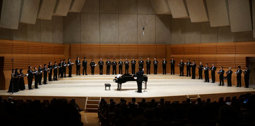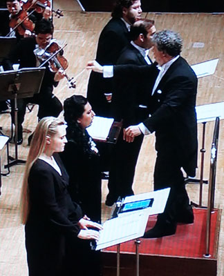 席は、1階横断通路の後の5列目、上手ブロックの通路側です。かなりいい場所ですね。実は、今までは殆ど2階席や3階席で見ていたものですから、ちょっと新鮮な感じです。それと、この席だと、会場のスタッフの様子がよく見えます。ひとり、ちょっとかわいい子がいたので、その子の仕事ぶりを見るとはなしに見ることになってしまいました。まずは、席が分からない人の誘導です。自分の席ぐらいすぐ分かりそうなものなのに、すぐにスタッフをあてにして案内させる人のなんと多いことでしょう。おかげで彼女は1階席の端から端まで歩きまわらされていましたね。と、お客を案内した帰りに、彼女はある男の人が座っている席に向かってすたすたと歩き出し、その人に話しかけています。知り合いでも見つけたので、話をしに行ったのでしょうか。勤務中だというのに。でも、そんな和やかな感じではなく、なんだかその男の人はケンカ腰になっているようです。どうやら、その人は帽子をかぶっていたので、後の人の邪魔になるので脱いで欲しいと言われているようでしたね。そうなんですよ。最近は、そういう最低のマナーも知らない人が増えていますから大変ですね。そのあと、彼女は私のすぐ後ろの席の人にも、毅然とした声で「開演になったら、帽子をお取りください」と言ってましたね。携帯で写真を撮ろうとしている人を見つけると、「写真撮影はご遠慮ください」と、きっぱり注意していましたし。