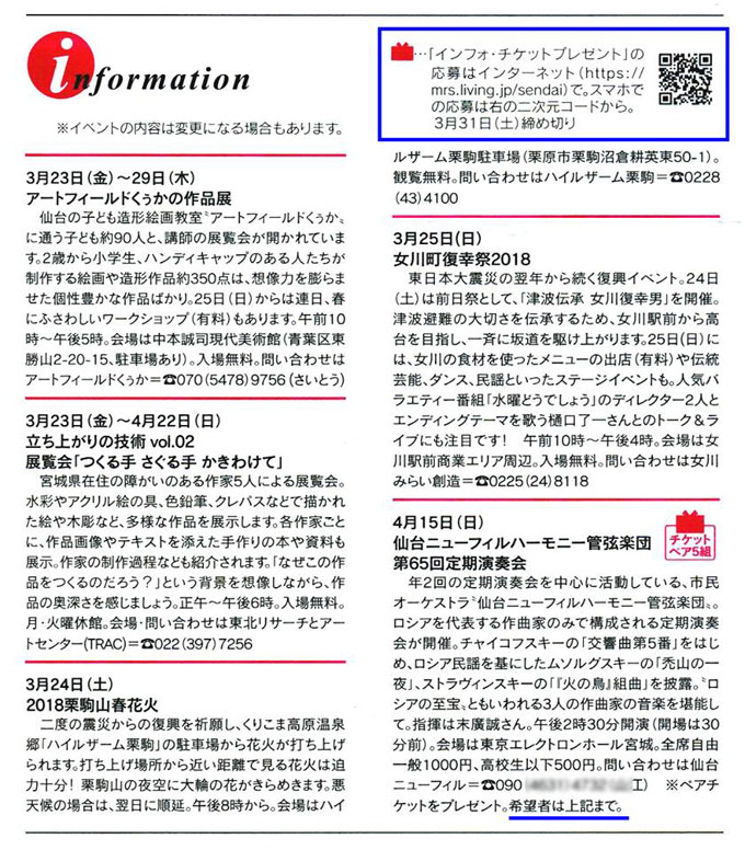 もはや旧聞に属しますが、ニューフィルの定期演奏会の案内やらチケットプレゼントが掲載されたタウン紙などがリリースされるようになってきました。そんな中で、おそらく今まではずっと企画書とチケットを送り続けていたのに、今回になってやっと掲載していただけることになった「仙〇〇〇〇グ」さんは、事前に電話やメールで細かい原稿のチェックなどもやってくれて、気合が入っているようでした。ただ、そのゲラを見ると写真も画像も入っていない、ほんのちょっとしたテキストだけだったので、ちょっとがっかりしてはいたのですが。 でも、これは購読者がかなり多いようで、案内の載った号が発行された直後に、私に電話がかかってきました。一応「連絡先」ということで私の携帯番号も載せてあったのですね。ところが、その電話の主は、いきなり「プレゼントに応募したいのですが」と言ってきました。その時点では、私の手元にはその掲載紙の現物はまだなかったので、「それでしたら、別のところに応募用の電話番号があるはずですから、そちらにお願いします」と、とても丁寧に教えてあげましたよ。ところが、その人は「冗談じゃないわよ!」といきなり電話口でののしりはじめましたよ。口調でわかる通り、それは女性のおばちゃんでした。とても思い込みが激しいようで、いくらこちらが誠心誠意説明をしても、全く聞く耳を持ちません。いい加減くたびれたので、「じゃ、よろしくおねがいしま〜す」と言って、電話を切りましたよ。 でも、気になったので、そのあと編集の方に電話してみました。そうしたら、「ご迷惑をおかけして申し訳ありません」と平謝りです。ただ、プレゼントの案内に関しては、「QRコードを読み込んで、インターネットで申し込み」という形なのだそうです。うーん、それでは女性のおばちゃんにはちょっと無理かも。後日届いた掲載紙は、こんな感じ。確かに、「希望者は上記まで」というすぐ上に私の携帯番号がありますね。 ![]() でも、間違いなく同じ声なのに、話し方は全然違って、えらくへりくだった感じでした。なんだかしおらしく、プレゼントのことには全く触れず、「チケットはどこで入手できるでしょうか?」などと聞いてきましたからね。そういえば、その前に編集の方に電話した時には、この女性のおばさんらしき人から問い合わせがあったようなことを言ってましたね。そこで自らの間違いを認め、改心して私に電話をよこしたのでしょうか。それでも謝るのはしゃくなので、自分だと分からない方法を選んだ、と。 それからは、このプレゼントの問い合わせが来るわ来るわ。いや、そんなに多くはないのですが、5通は来ましたかね。もちろん、そのたびに私は懇切丁寧に対応させていただきましたよ。 そして、たぶん6通目になる電話が来た時も、私はまず、「〇〇ですね?」とその掲載紙のことを尋ね、いつもの通り「あいにく、こちらではプレゼントについてはお答えできないんですよ」と言ってあげました。そうしたら、相手は、「いや、そうではなく、ニューフィルのコンサートのチケットはどこで買えるのか教えていただきたいんです」ですって。あの案内記事を見て、素直に「お問い合わせ」をしてくれた人だったんですね。 |
