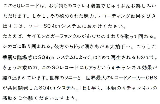 今朝の新聞の最後のページ(番組欄)に、こんな広告が載ってました。 ![]() なんて、これはすでに私は入手していますし、明日あたりの「おやぢ」のネタにしようと思っていますから、この正体は知っています。そもそもこれを知った時には、えらくマニアックなものが出るなあ、と思っただけで、まさかこんな新聞に公告を出すほどのセールスが期待できるようなものでは全然ないと思っていましたよ。でも、このレーベル(ソニー)は、本気でこれを売り込もうと思っているのですね。 この「正体」は、かつて「4チャンネル」(これを、正確には「クアドラフォニック」というのですね)でLPが発売されていたものが、そのマスターを使ってSACDのマルチ・トラックでそれと同じものを聴かせようということなんですよ。今では、そういうものは「サラウンド」と呼ばれています。 つまり、いまでこそ「サラウンド」という名前で、主に映画などの音声をご家庭で映画館と同じように聴けるというシステムが普通に売られていますが、それと同じことを、半世紀近く前に「レコード」で実現しようとしたのが、「クアドラフォニック」なんですよ。 しかし、なんたってレコードの溝は1本しかありませんから、そこからステレオ用の2つの異なった信号を取り出すのさえ一苦労だったというのに、その倍の4つの信号がここでは必要になってきますから、そもそも無理のある話だったんですね。各メーカーは果敢にもそれを実現させようと社命をかけて開発にしのぎを削ったのですが、結果的には満足の行くものは出来ず、中途半端な規格だけが乱立するようになっていました。 そんなものが、売れるはずはありませんよね。今の価格だと100万円を超えるものが、将来にわたって確実に使えるという保証は何もなかったのですからね。そして、この「クアドラフォニック」は完全にこの世から姿を消しました。 それが、現在のSACDでは簡単に再生出来てしまうんですよ。そんなことは大分前からわかっていたことなのですが、今頃になってこんな大騒ぎをしているんですね。確かに、これは今でも十分に通用するすごい録音です。大騒ぎをするだけの価値はありますが、だったらもっと早くやってくれよ、という気はしますね。SACDが出来て、もう20年近くも経つんですからね。 このパッケージは、発売当時のものをそっくり復刻していて、当時のチラシなどもしっかり入っています。それを見ると、当時のソニーのやる気がもろに伝わってきます。 ![]() ![]() |