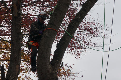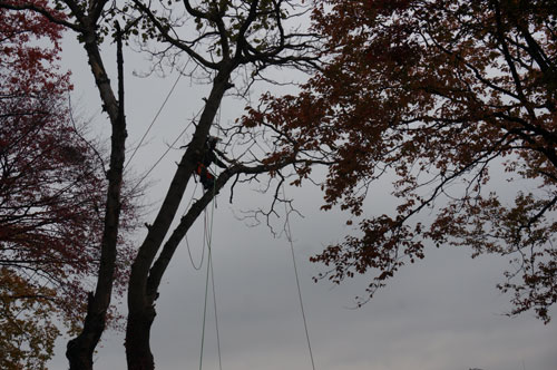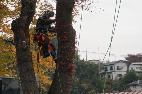 職場の墓地の北のはずれに、大きな桐の木が立っていました。それが、もうすっかり枯れてしまっていたのですね。 ![]() 実際に伐採工事が始まったのは、先週のこと。総勢6人のチームがやって来ました。 ![]() ![]() ![]() ![]() ![]() ![]() ![]() ![]() ![]() ![]() ![]() こんな作業を何回も繰り返して、枝から幹まで全て短く切って下におろします。 ![]() ![]() 見事な職人技ですね。 |