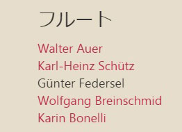 今年のウィーン・フィルのニューイヤーコンサートは、久しぶりにきっちりと全部見てみました。もちろん、録画ですが。ティーレマンがアンコールであんなおちゃめなことをやるなんて、とても意外でしたね。というか、あまり慣れないことを無理をしてやっている、という気もしましたが。 まあ、演奏については別に語るべきものもないので、もっぱらカメラワークとかに注目していましたが、ひところの天井にワイヤーを張り巡らしてカメラを走らせる、といった奇抜なことは、さすがにやめていましたね。ただ、このコンサートの性格が「音楽を聴く」というものではない、という主張は、その演出からははっきり伝わってきました。会場に飾られた花とか、会場内の装飾などの陰に、オーケストラが見える、といったようなアングルがやたら多かったような気がします。肝心のソリストが全く写っていないという個所は数知れずでしたしね。 例えば、「ジプシー男爵」のフルート・ソロなんかは、ぜひともアップで見たかったものです。今年の木管のシーティングは、こんな感じでした。 ![]() ![]() ![]() ![]() もしや、と思って、ウィーン・フィルではなく、「ウィーン国立歌劇場管弦楽団」の名簿を調べてみました。 ![]() 調べてみたら、彼女はそれまでウィーン交響楽団の首席奏者だったのですが、2016年に、定年退職したディーター・フルーリーの後釜として、このオーケストラのオーディションを受けて首席奏者になったそうですね。今のところ、名簿上はまだウィーン・フィルの団員にはなってはいないようですが、ニューイヤーコンサートで吹いているのですから、もうすでに「昇格」しているのでしょう。さっきの「ジプシー男爵」のソロを聴いた感じでは、ちょっと薄っぺらな音でしたし、表現もなにか伸びやかさがありませんでしたね。きっと、大舞台で緊張していたのでしょう。 ボネッリの方ですが、1曲だけ、フェダセルと席を代わって2番フルートを吹いていました。 ![]() ![]() |