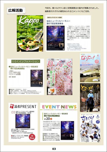 きのうの練習は合奏だったので、やっと「かいほうげん」のための写真を撮ることが出来ました。毎回団員の方々に順番に書いてもらっている自己紹介みたいなものなのですが、原稿は届いていたのにまだ写真がなかったのですよ。 ![]() ニューフィルは、こんな感じでとても家庭的な雰囲気、若い人からお年寄りまで仲良く練習に参加しています。ですから、ヴァイオリンあたりでは人数も少ないですから、入ればとてもやさしく扱ってくれるはずですよ。腕に覚えのある方もない方も、ぜひ仲間になってほしいですね。 じつは、先日公式サイトの投稿フォームで、そのヴァイオリンの入団希望の方から「見学に行きたい」という連絡が来ました。ですから、さっそくコンマスに連絡してそこにあったアドレスに返事をしてもらったのですが、なんだかエラーになってメールが届かなかったようなのです。それは携帯メールでしたから、もしかしたら着信拒否の設定になっていたのかもしれませんね。せっかく連絡をいただいたのにこちらからはもう連絡の取りようがなかったので、公式サイトのトップページに異例のメッセージを出しておきました。先方が返事が来ないので不審に思って見るかもしれませんからね。でも、今のところは何の反応もありません。ですから、ここにもこんなことを書いたのですが、ここを見る可能性はもっと低いでしょうから、何の効果もないでしょうけどね。 でも、せっかくの朗報だったのに、こんなことでダメになるのは、悔しいですね。 この写真で、こんどの「かいほうげん」に必要なものは、私が準備するのはすべて揃いました。あとは、隔号で連載しているシリーズの原稿さえ届けば、すぐにでも発行できるようになっています。 そこでは、これまでに集まった定期演奏会の案内が載ったタウン誌も紹介されています。ただ、「りらく」は掲載紙を送ってはくれないので、きのうの夕食を食べたお店にあった今月号から、写真を撮りました。 ![]() もう一つ、演奏会が終わってから必要になるものを頼まれました。それは、収録したCDやBDなどのカバーを作るための画像です。これまでは、チラシを作った人がそれも作ってくれたのですが、前回からそれが出来なくなったので、私が作ってみたら、それが採用されて、今回も頼まれました。要は、チラシにあった不必要な文字を消す、という作業なのですが、一応こんなのが出来ましたよ。 ![]() ![]() |