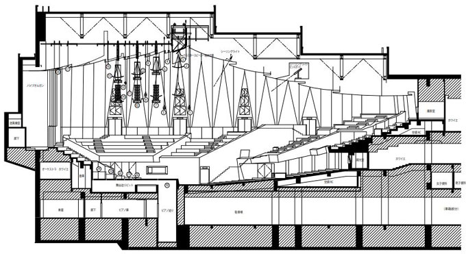 最近の新聞に、さるコンサートホールでさる歌手が歌うさる曲のソロパートが聴こえないという観客からのヤジがあったという記事がありましたね。正確には、ハンブルクに新しくできたエルプフィルハーモニーで「大地の歌」を歌っていたカウフマンの声が聴こえてこないとお客さんが騒いだのだそうです。おそらく、カウフマンは全曲一人で歌っていたのでしょうね。 ![]() そのサントリーホールですが、ホールの中の様子はさんざん見ることが出来ますが、その外観ということになると、なんか、それこそ上のエルプフィルハーモニーのようなインパクトはないのではないでしょうか。あるいは、ウォルト・ディズニー・コンサートホールのようは建物としての外観は、このホールからは伝わってはきません。 ![]() ![]() ![]() ![]() ですから、ホールの建物自体は十分に存在感があるのですが、このホールはその地形を巧みに生かして、その存在感を逆に感じさせないように作られているのではないでしょうか。さっきの正面からの写真を見ると、後ろに一段高い天井部分がわずかに見えていますね。そのように、視覚的に高さを感じさせない錯覚が取り入れられているのでしょう。つまり、普通にホールに入ろうとすると、その建物全体を見渡せる場所に行くことはできないようになっているのですよ。 そこで、ストリート・ビューで、このホールを「裏側」から見てみました。 ![]() ![]() |