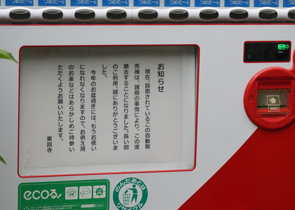 職場の自販機をしばらくしたら撤去するということは、以前の禁断に書きました。ただ、そうなってくると、これを目当てにやってくるお客さんには、何らかの形でそれをお伝えしなければいけません。そこで、お盆が始まる前に皆さんに送っているDMの中に、そのことを書くことにしました。タイミング的には、お盆が終わるまでには飲み物の在庫がなくなってしまいますが、仕方がありません。 さらに、自販機そのものにも、それと同じ文面で告知を貼り付けました。 ![]() ![]() でも、そういうものですから、このロゴが入った板は、簡単に取り外すことができるはずだと思って中を開いてみても、どこから出すのかちょっとわからなかったのですよね。他のところ、カラムの設定とか料金箱の修理などは、これまでにトラブルがあったたびに教えてもらって、完全にマスターしていたのに、こればっかりはやったことがなかったものですから。でも、よくよく見たら小さなツマミを回すだけで、簡単に取り外すことが出来ました。そこに、さっきのプリントした紙を貼り付けたのですよ。これだったら、もしお盆の後半になってもう「綾鷹」がなくなっていても、ご理解いただけることでしょう。 本当はこんなことはしたくなかったのですが、税務署の指示とあれば、仕方がありません。そのほかにも面倒くさいことを言われて、社長はその対応で悩んでいましたからね。 まあ、お役所の考えることなんか、とてもすんなりとは受け入れられないものですよ。例えば、最近よく目にするイラスト入りの「ご当地ナンバー」なんで、そんな好例(悪例)ではないでしょうか。例えば、仙台市は、 ![]() 今日、家に帰るときに、前に平泉ナンバーの車が走っていました。それは、私にはこんな風に見えました。 ![]() ![]() |