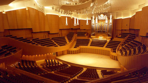 Facebookで、仙台フィルのチェリストのYさんが、鶴岡市に最近できたホールについていろいろ報告されていました。なかなか面白い内容だったので、実際にそのホールの公式サイトなどを見たりして、ホールのことについてちょっと考えてみました。 それは、こんな外観のホールでした。 ![]() いや、これが、たとえばLAあたりにあれば、違いますよ。 ![]() まあ、これも「町おこし」なのでしょうから、別にどうでもいいことなのですが、そこのサイトでそのホールの内部の写真や座席表を見て、びっくりしてしまいました。 ![]() ![]() ![]() 余談ですが、「ワインヤード」というのは、「ブドウ畑」という意味なのだそうです。そんな畑に似た形の客席だからでしょう。ただ、正確には「ワイン」はブドウではなく葡萄酒、ブドウは「ヴァイン(vine)」ですよね。ですから、「ブドウ畑」は本当は「vinejard」で、発音も「ヴィニャード」でなければいけません、と声高に主張する方々がいらっしゃいます。でもね、たとえば「ソリスト」は本当は「ソロイスト」と言わなければいけないのに、今では完全に「ソリスト」に定着しているように、これももはや「ワインヤード」が定着しているのですから、これでいいのではないか、と思うのですがね。 ということで、このホールの客席は、確かにそんな段々畑のような配置にはなっています。しかし、このホールそのものは、決して「ワインヤード型」ではありません。つまり、「本物」の「ワインヤード型」というのは、例えばその先駆けとなったベルリンのフィルハーモニーのようなところで、こんな座席配置になっています。 ![]() ただ、中には必ずしも客席がステージの後ろにないところもあります。 ![]() ![]() いずれにしても、鶴岡のホールは、単に客席の配置を「ワインヤード型」に似せているだけの「偽ワインヤード」です。実際はどこにでもある「多目的ホール」と何ら変わるところはありません。そりゃそうでしょう。「ワインヤード」というのは、あくまでクラシック音楽を良い音で楽しむことを目的としたホールですが、そんなものがこの地方都市で建設費や維持費に見合うだけの収益を挙げられるとはとても思えませんからね。歌謡ショーやお芝居、ミュージカルにも対応できなければ、存在価値がないのですよ。 さっきのサイトには、ステージの「花道バージョン」というのも披露されていました。 ![]() |