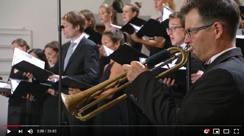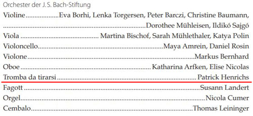 きのうの「おやぢ」では、バッハが使っていた珍しい楽器について書いていました。あそこで演奏されていたカンタータBWV5では、「tromba da tirarsi」という楽器が使われていました。こんな名前の楽器は聴いたことがありませんでしたが、まあトランペットの一種だということは見当が付きます。それで、ニューフィルのトランペット奏者、しかもこの時代の楽器を実際にお使いになっているNさんのお伺いを立ててみたら、即座に返事がいただけました。というか、その楽器に関する詳細なサイトを教えていただきました。 その結果は「おやぢ」に書いた通りです。つまり、ナチュラルトランペットでは出せない音が出る「スライドトランペット」というものが、ルネサンスの時代にあったのですね。そして、そこから変化していった楽器が「トロンボーン」になるわけです。今まではなんとなくトロンボーンの方が昔からあったようなイメージがあったのですが、本当はトランペットの方が先だったんですね。勉強になりました。 そうしたら、「おやぢ」のブログ版にコメントがあって、そこであの録音の映像を紹介してくれました。さっそく見てみたら、それはBWV5の全曲でした。トランペットのオブリガートがあるのは最後の方なので、最初のあたりは飛ばしてみると、確かにトランペット奏者が見つかりました。しかし、 ![]() ![]() 他にも気になるところがあったので、最初からちゃんと見てみることにしました。そうしたら、1曲目でこのHenrichsさんがアップになっていました。コラールのテーマを演奏していたんですね。そして、その楽器がさっきのとは全然違う形をしてました。そして、 ![]() ![]() ![]() でも、これと似たことを、現代のトランペットでやっているのを見たことがありました。 ![]() |