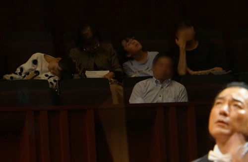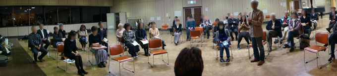 きのうは定期演奏会が終わって2週間ぶりのニューフィルの練習でした。つまり、日曜日に本番があって、そのあとの2回の火曜日がお休みということでした。実際は、先週は「ハッピーマンデー」で翌日の火曜日は市民会館が使えないために木曜に変更されるのですが、それだと出席者も少なくなってしまうので、いっそのことお休みにしてしまったのですね。 でも、やはりニューフィルのメンバーの習性は恐ろしいもので、その先週の木曜日にいつもの練習場に行ってしまって、誰もいなかったので帰ってきた、という人がいたみたいですね。あ、もちろん私が作った日程表では、しっかり2回のお休みが書いてありましたよ。 初練習では、次の定期演奏会のメインのシューマンの「ライン」を、一通り通してみました。私はまだこの曲を実際に演奏したことはありませんが、始まる前に練習指揮者が「やったことのない人」と手を上げさせた時にはほとんどの人の手が挙がっていたので、やったことのある人の方が珍しかったようですね。私は「2番」だけは2回演奏したことがありますが、全く何の印象も残っていません。そして今回の「ライン」も、フルートはほとんど他のパートとのユニゾンな上に、ほとんど休みなく吹きっぱなしという、とても無駄の多いオーケストレーションなので、吹いていてあまり手ごたえがありませんでしたね。私のパートは2番なので、入りが微妙なところもあり、ちょっと消化不良気味で終わってしまいました。半年後の本番の時には、それがどんな印象に変わるか、あるいは変わらないか、興味があるところです。 逆に、もう1曲担当となった「くじゃく」のピッコロの方が、やりがいはありそうですが、こちらは実際に吹くのは来週になります。 それが終わって、恒例の「懇談会」となりました。定期演奏会の反省をみんなで言い合う、という会ですね。私が、その議事録を作るための録音をしたり、「かいほうげん」に載せる写真を撮ったりするのも、すっかりルーティンなっています。ただ、いつも写真を載せるときに感じていたのは、全体を写したものがないな、ということでした。私のカメラには演奏会用の望遠レンズは用意してありますが、広角のレンズはありませんから、いつもは何枚か分けて撮った写真を貼り合わせて使っていたんですね。 そこで、たまには変わったことをやってみようと思って、「パノラマ」機能を使って撮ってみようと思いました。これは実績があって、 ![]() そこで、懇談会の時も、議長の後ろから180°のスパンで撮ってみようと思いました。まず向かって左のヴァイオリンのパートから始めて、右端のヴィオラのパートまでスキャンしようというプランです。 ところが、これは前から分かっていたことですが、スキャンを始めるとカメラが「バチバチバチ」とものすごいシャッター音を立て始めました。みんなはもう議事そっちのけでこちらに注目して、笑い出しましたね。こっちも恥ずかしかったのですが、とにかく最後まで続けないといけないと思って、カメラを振っていくのですが、ヴィオラにたどり着く途中で撮影が終わってしまいました。 そう、これは、タイミングが難しくて、なかなか思ったようには収まってくれないんですよ。上の写真だって、あのように満足のいくのを撮るために何回失敗を繰り返したことか。でも、今回は失敗したとしても、もはやもう一度撮り直しをするだけの勇気はありませんでした。 ![]() 何かと差しさわりがあるので、ここでの皆さんのお顔にはフィルターをかけています。でも、修正前の写真では、最初のうちは神妙な顔をしているのに、真ん中あたりになると笑ったり、中には拍手をしている人まで写ってました。それは、のちに「かいほうげん」でお楽しみいただけるはずです。 |