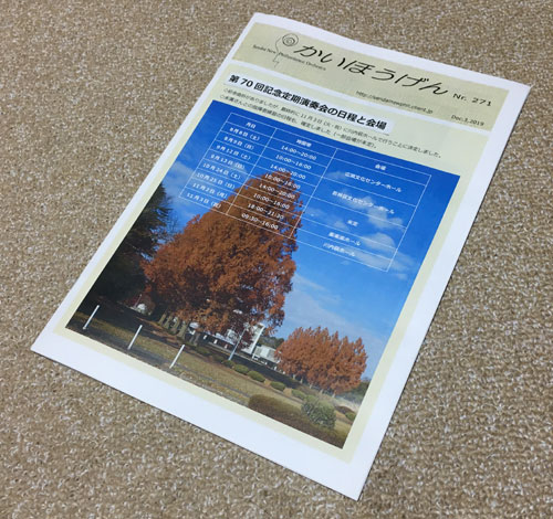 先週あたりから「光のページェント」も始まったそうで、もう年末モード全開の今日この頃です。なんたって1週間が経つのが速いこと、もうあっという間に終わってしまうという感じです。先週なんか、まずは「かいほうげん」の印刷から始まりましたからね。今回はかなり余裕をもって作っていたので、楽々出来上がると思っていたのですが、なんかプリンターの調子が悪くて、無駄に時間が取られてしまいました。 ![]() ところが、そのあとで、来年用の会費納入記入用のオリジナルの名簿(4年に1回作っています)を作ろうと思って、そのテーブルを多量に両面印刷したら、モノクロなのに、やはりこんな風に最後の方では転写の汚れが出るようになっていたのです。これはもう、修理をお願いするしかありません。今度は、そのサンプルがありますから、きちんと修理をしてくれるはずです。 ただ、今週からは、職場では毎年恒例の郵便物の袋詰めが始まりますから、プリンターまわりは足の踏み場もなくなって、とても修理するだけのスペースは確保できなくなってしまいますから、実際に修理を依頼するのはもう少し先になりそうですね。とにかく、今週はもうその袋詰めだけで終わってしまいそうな予感です。 いつもこんな感じですから、その「ページェント」もしばらく実物は見てませんでした。たまたま、先日市役所前を車で通ったら、あそこの大きなヒマラヤスギに電飾を付ける工事を目撃してしまいました。 ![]() ところが、今年実際に出来上がったツリーの写真を見てみると、なんだかがっかりしてしまいますね。 ![]() |
