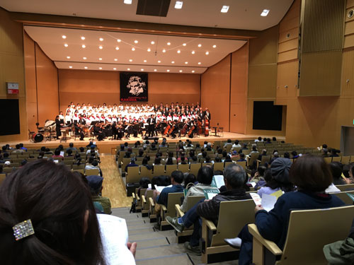 12月になってしまいましたね。いつもだと今頃は角田で「第9」をやっているのですが、それは去年までの事で、今年からは別の団体が伴奏をすることになっています。要は、ニューフィルがやっていた時には、ホールのステージが狭いので、合唱が乗るとオーケストラの場所がなくなってしまうために、座席を一部撤去してそこでオーケストラが演奏するようにしていたのですが、それだと収容人員が少なくなってしまうので、座席の部分を使わずにステージに乗る程度の少人数のオーケストラにお願いした。ということなんですね。 ただ、伝えられた情報によると、そのオーケストラはもちろん弦楽器の人数は少ないのですが、管楽器まで全パート1人ずつだというのですね。それはちょっとまずいのではないか、と思ったのと、果たして客席を増やして、それだけのお客さんが入ったのかを見届けるために、角田まで足を運んでみることにしました。これも、広い意味での情報収集ですから「広報係」の仕事だと言っても構わないでしょう。 しかし、角田は遠いですね。今までは相乗りで話し相手がいたので退屈しませんでしたが、一人だけで2時間近く運転するのは結構つらいものです。途中で阿武隈川の河川敷が見えましたが、まだ台風の爪痕が残っていました。 駐車場の事情は分かっているので、ホールの前に停められるように早めに行こうと思い、開演の2時間前に着いたら、その駐車場はガラガラでした。チケットを事務室で扱っているのも知ってましたから買いに行ったら、座席表と、かなり分厚いチケットの束がありました。どうやら、満席にはなっていなかったようです。今までは確か全席指定だったはずですが、今年は自由席もあります。でも、それだと並んでないといい席には座れませんから、指定席で見晴らしのよさそうなところがあったのでそこをゲットです。あとは、車の中で時間をつぶします。そのうち、この駐車場はやはり満車になってしまい、他の駐車場への誘導の人が立つようになりましたね。その辺の手際の良さは、やはり毎年の事だからなのでしょう。 ところが、その「自由席」は今までなかったので、その対応にはちょっと落ち度があったようです。客席が、どこからが自由席なのかが、全く分からないのですよね。ですから、私が自分の席を探し当てたら、そこにはすでに親子連れが座っていましたよ。もちろん丁寧にどいていただいたのですが、その人は自由席だったようです。そのうち、すぐ前の席ににぎやかなおばちゃんの2人連れが座っておしゃべりを始めたのですが、そこにも指定券を持った人がきたので、どかされていました。指定席の人も自由席の人もどちらも嫌な思いをさせられるのですから、これは困ったものです。 とは言っても、別に指定席を追い出されても、座るところはいくらでもあるようでした。最終的にはホールはかなりスカスカ、人数的には去年までとあまり変わらない様でしたね。 ![]() オーケストラは、弦楽器は5.5.4.4.2、それに管楽器が1本ずつですが、クラリネットとホルンは2本、打楽器も2人、総勢31人でしたね。まあ、いつものニューフィルの半分です。それでも、ステージはかなり狭そう、ヴァイオリンはぎりぎり縁のところまで来てました。 前曲の「エスキース」は、別にそんな編成でも違和感はありませんでした。フルートが2本でハモるようなところはフルートとオーボエになっていたように、あちこちに「工夫」が施してあります。ただ、「きよしこの夜」の間奏の金管のメロディの受け渡しは、物理的に無理だったようで、グロッケンでごまかしていましたけどね。 「第9」は、信じられないことに、この編成で全曲の演奏です。確かに、「室内オーケストラ」あるいは「ピリオド・オーケストラ」で「第9」を演奏しているものはいくらでもありますが、弦楽器はまずこの倍近くはいますし、何より管楽器のパートは全部揃っているのが当たり前ですよ。というか、全パート揃っていなければ「第9」にはなりえません。ですから、オケだけの3楽章までは、なんとも居心地の悪いものでした。やはり、2番奏者というのも大事なのだなあ、と、変なところで感心してしまいます。それでいてティンパニだけはめいっぱい叩いていますから、そうなると弦も管もほとんど聴こえなくなってしまうほどです。まあ、もしかしたらここで初めて「第9」を聴く人もいるかもしれないのですから、そういう人にこんなまがい物が「第9」だと思われてしまうのは、とても心外でしょうね。 でも、いいこともありました。第4楽章になって合唱が入ると、いやあ、合唱がとてもよく聴こえてくるのですね。ニューフィルの時はオケがいくら抑えるように言われても、結局は合唱が目立たなくなっていたのですが、今回は違います。なんせ、これは角田の合唱団のためのコンサートなのですから、このぐらい合唱の陰になってくれるオーケストラでなければ務まら