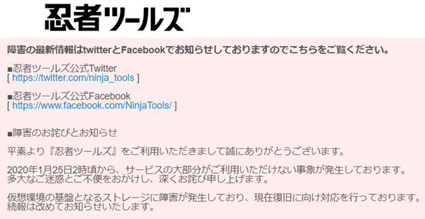 先日の「公式サイトサーバー停止事件」は、まだ解決されていないようですね。現時点では、サイトが見られる状態までには戻ったようですが、それはあくまで「閲覧」できるという段階にとどまっています。つまり、サーバーがダウンした以前の状態には戻ったということですね。まあ、一応こちらが送ったファイルはそのままなくならないで保存されていたのですね。それなりのバックアップはあったのでしょう。 ポータルサイトも、形だけは修復されているようです。 ![]() まあ、それでも、今回の場合は、完璧なバックアップの用意が出来ていたので、「忍者」がダメになった時にもそのバックアップのサーバーに導けば、何の支障もなくなりましたから、その点は良かったのではないでしょうか。その導き方にしても、私としては出来ることは全部行っていました。まず、掲示板は独立していますからそちらに書き込みましたし、このサイトでも案内をしています。そして、もっとも確実だと思われるのが、Facebookページでの、公式サイトのURL更新です。 ![]() つまり、ここを見てさえいれば、今回の私の対応に対して「不十分だ」などととおっしゃることはできないはずなのですよ。 |