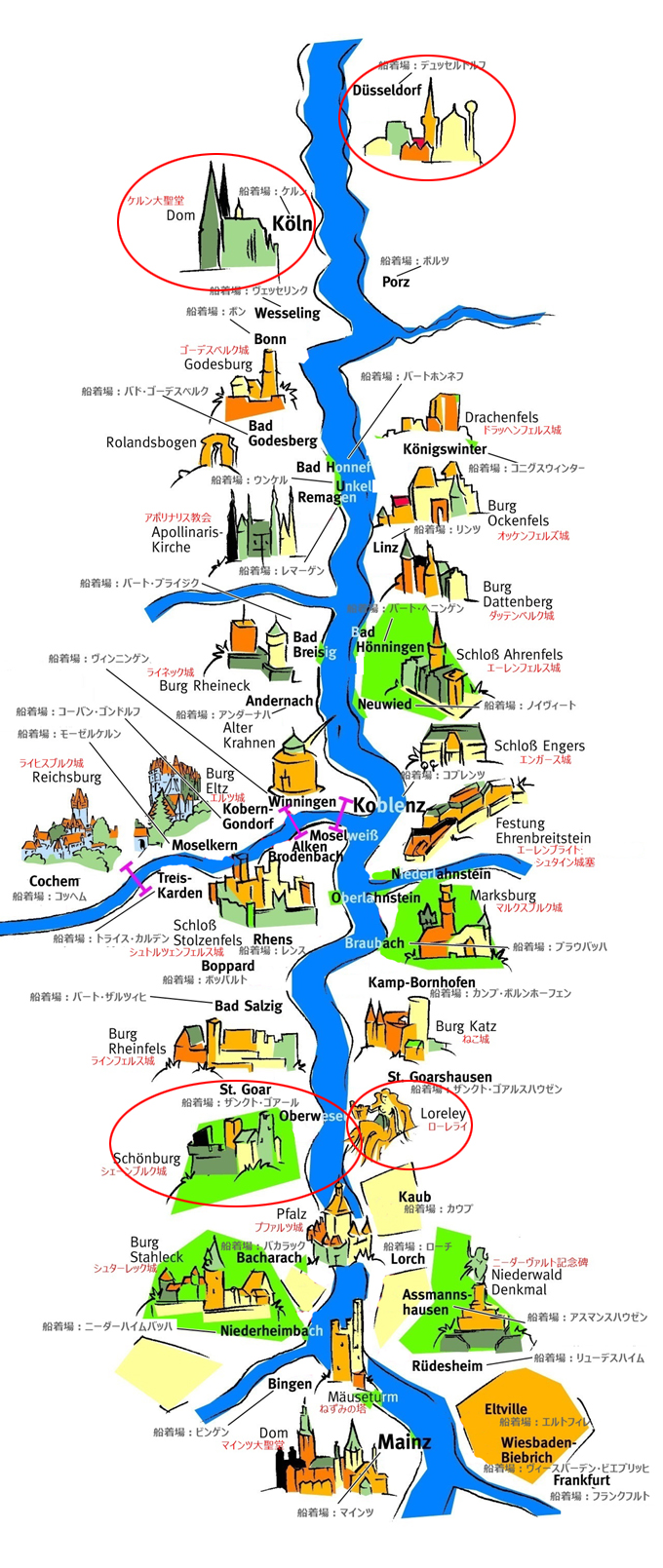 この前ご紹介した、ニューフィル春の定期のチラシですが、来週中には印刷が出来上がることになったのだそうです。まあ、ギリギリ2ヶ月前には間に合ったことになりますね。これからは、一発で承認できるようなデザインを作ってほしいものです。 それを受けて、きのうの練習で団長がそのデザインについてみんなに語っていました。「まだ現物はお見せ出来ませんが」とは言ってましたが、ここを見られる方はもうすでにご覧になっていますね。ですから、それがライン川の河畔の写真であることはすでにご存じの事でしょう。その時に団長は、「ここは○○のあたり」と言ったのですが、実際に行ったことのない私には、それがどこなのかはわかりませんでした。 ![]() そうしたら、このアングルと全く同じ写真が見つかりました。 ![]() さらに、別の写真で個別の建物も見れます。 ![]() ![]() それが、ライン川のどのあたりかというのも、ネットに分かりやすい地図がありました。上が下流、下が上流です。 ![]() さらに、佐々木さんのお話に出てきたケルンは、はるか下流です。さらに、シューマンが投身入水自殺を図ったのは、もっと下流のデュッセルドルフ市内の橋の上からでした。 いつかは、行ってみたいですね。でも、「クルーズ船」はちょっと怖いかも。 |