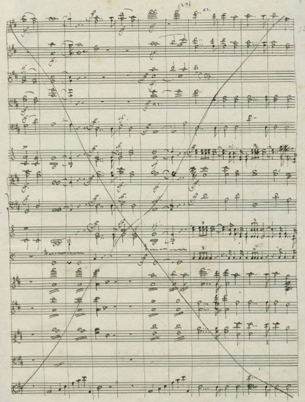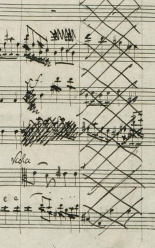 おとといのNHK・Eテレで、N響の定期演奏会の放送がありましたが、そこで鈴木優人さんが指揮者として登場していましたね。確か2年ぐらい前に仙台フィルの定期でも指揮をしていたようで、それが団員の間でかなり評判がよかったようでした。その時に、メインがメンデルスゾーンの「宗教改革」だったのですが、チラシなどを見てみても何の注釈もなかったので、普通の改訂稿で演奏したのかな、と思っていました。そのコンサートのレビューを読んでみても、特に楽譜のことは触れられてはいませんでしたからね。 ![]() この時も、最初の曲目紹介では「宗教改革」は特に何の注釈もなかったのですが、番組が進んで曲が始まる直前の解説の時に終楽章の冒頭のフルート・ソロが流れたときに、その前からのフレーズが聴こえてきたので、もしや、と思ったら「若き日の初稿で演奏されます」というコメントが入ったので、びっくりしてしまいました。仙台フィルでもやはり初稿で演奏したのでしょうかね。 いずれにしても、私にとっては初稿の映像は初めての体験ですから、うれしかったですね。確かに、譜面台には、私も持っている薄緑色の表紙の、クリストファー・ホグウッドが校訂を行ったベーレンライター版のスコアがありました。ここから張ったリンク先で書きましたが(余談ですが、よく「リンクを貼る」という言い方を見かけますが、これは誤りです)、最近ではこれを使って演奏する指揮者が増えています。そもそも、このスコアを教えてくれた新田ユリさんは、日本中のアマオケでこの初稿の演奏を行っています。CDもリンク先のボッシュ盤のあとにも、マンゼとネゼ=セガンの録音がリリースされていますね。 もちろん、一番の興味は第4楽章のフルート・ソロです。ただ、この放送では、それが終わるまでが「第3楽章」という解釈で字幕が出てましたね。楽譜では3、4、5楽章は切れ目がないので、楽章の切れ目を記すのは演奏家次第でしょうが、どうやらこの形に定着しそうですね。ただ、そうなると終楽章は第4楽章になってしまうので、初稿と改訂稿の区別がつかなくなりますね。ここでの甲斐さんのソロは、とても重々しく立派でしたね。私も、新田さんの指揮で吹いてみたいものです。 とっても素敵な演奏で、非常に楽しめました。終わってからはもちろん甲斐さんなどが指揮者に立たされて拍手にこたえることになるのですが、彼らはまずお辞儀をした後に、すかさず指揮者に手を差し伸べるという、粋なことをやっていましたね。プロの余裕でしょうか。私などは、立たされると恥ずかしくてお辞儀もできないほどですが、こんなことをやってみたいと思ってしまいました。 ちょっと気になったのですが、鈴木さんはこの曲の最後にルターの「神はわがやぐら」がトゥッティで演奏されることの重要性を語っておられましたが、本当の初稿では、そういうことはやっていないんですよね。IMSLPで自筆稿が公開されていますが、そこには、初稿の上にそのまま改訂稿の訂正や削除を書き込んでいる様子を見ることが出来ます。そして、最後の部分は、 ![]() ![]() ![]() ![]() コラールは、そのあと、「1832年」のサインがある別の楽譜に書かれています。これが、上の楽譜の削除された部分と差し替えられて、改訂稿になったのですね。 ![]() ![]() |