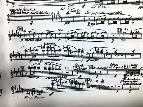 この間、さるドラッグストアに行ったら、こんなものが置かれていました。 ![]() そういえば、もう花粉症のシーズンに入っているんですよね。私の場合、1年中花粉症になっているようなものですから、特に意識はしていなかったのですが、毎年春のお彼岸の頃にはそれが一段とひどくなっていたのでした。とは言っても、別に薬などを飲んだりしても全然効かないので、何もしないでひたすら我慢する、というのがいつものやり方です。花粉症で死ぬことはありませんから、慣れるのが一番です。 慣れると言えば、このところ、お休みでもあんまり繁華街に行ったりはしませんから、自宅でも練習するようにしています。もう春のレパートリーはいまさらさらってもしょうがないので、秋の定期にやる予定のマーラーを少しづつさらっているところです。IMSLPでパート譜もダウンロードできるのですが、フルートの1番と2番が一緒になったPDFでは、そのページ数が60ページもあったのに、まずびっくりです。それぞれ30ページずつですね。普通の交響曲だと多くても十数ページですからこれはもう嫌になるほどたくさんの音符があることになります。それを「かいほうげん」のようにA3の用紙に4ページ分印刷したら、8枚必要になりました。 ![]() でも、何回かやっているとこれが「慣れる」んですね。さっきのC♯のロングトーンも、最初は全く続かなかったものが、楽々伸ばせるようになりました。結局、高音は多いものの、指使いなどは前にやった「9番」よりはずいぶん楽だな、と思えてきましたね。これも、マーラーにある程度「慣れて」きたせいかもしれません。 ただ、中にあるドイツ語の指示は、ドイツ語の手書きだと全く分からない文字もあります。実際に使うのはレンタルのパート譜ですが、それはどうなっているのでしょうね。でも、ニューフィルにはドイツ語に堪能な方がいらっしゃるので、その方にきちんとリストアップしていただいて、もちろん日本語訳も付けてもらえれば、すごく助かるでしょうね。 でも、この「7番」はフルートパートがこんな感じで全く報われません。一応全曲吹いてみたのですが、おそらく、マーラーの交響曲の中ではこれが、フルートにとっては一番つまらない曲なのではないでしょうか。 |