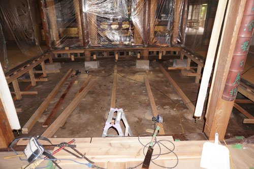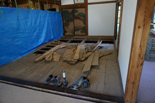 今、職場の本堂がすごいことになってます。以前から、畳の上を歩いていると部分的に沈むような感じのするところがあったんですよね。そこで、専門家に床下を調べてもらったら、あちこちの柱が腐ったり、シロアリあたりに食われたりしていることが分かりました。小動物が住み着いているようなふしもあります。そこで、この際全面的に床下をリニューアルすることになったのですよ。 さいわい、最近はここを使うことが少なくなっているので、そんな大工事をしてもそんなに支障はありませんから、さっそく先週あたりからその作業が始まりました。私としても、そういう現場はぜひとも記録しておきたいですから、写真を撮りまくっています。 ![]() ![]() こんな風に電線がくっついていたりしますから、間違って切ったりしないように注意しなければいけません。実は、別の場所をやっている時に、バールかなんかでちょっと傷をつけてしまって、火災警報が鳴りだしたことがありました。あわてて検知器の業者を呼んで直してもらいましたが、その部分の電線がつながっているようで、中では切れていたのだそうです。 ![]() ![]() こんな仕事をやっている時に、私は隣の位牌堂で、この間から位牌へのラベル張りに精を出しています。全部で3つのブロックのうちの1つは全部終わって、2つ目に入ったところ、6段のうちの2段までが終わりました。順調に作業は進んでいます。 こういうことは、やっているうちにだんだん手順が洗練されていくようですね。まるで、「かいほうげん」を印刷している時に、何も考えなくても手が勝手に動いて製本が出来上がっていくときのような感じでした。 3月に、最後の「かいほうげん」を出したのですが、あれはネットでPDFを公開しただけなので、来週、何事もなく練習が始まったら、50部ぐらい印刷して持っていくつもりです。それを見ていたら、最後のページにとんでもないミスがあったことに気が付いて、あわててPDFも修正しました。もちろん、実際に印刷したものは外部には出ていませんから、これで「証拠隠滅」は完璧です。 |
