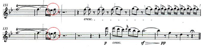 この間のニューフィルの合奏では、ベートーヴェンの「田園」を練習していましたが、今回は指揮者の要望(たぶん)でベーレンライター版の楽譜を使うことになっています。もはや出版されてから20年以上経っていて、すっかり世界中のオーケストラのライブラリーのスタンダードとなった感のあるこの楽譜ですが、アマチュアにとっては敷居が高いところもあるようです。うちのオケの練習指揮者でもある団長も、そんな戸惑いを隠せなかったのか、練習の時に「スコアの序文を、だれか日本語に訳してくれないでしょうかね〜」と、ほとんど私に向けたような雑談を放っていましたよ。いや、別に訳すのは簡単ですが、それを読んだからと言って何か特別なメッセージが伝わるということでもないのですけどね。このデル・マーが書いた序文はそんなに難しくはないので、簡単に読めるはずなのに。 ジョナサン・デル・マーというのは、もちろんこのベートーヴェンの交響曲などの校訂を行った音楽学者です。彼が行ったのは、それまでに流布していた楽譜が、作曲家の意思に背いて手が加えられているので、それをすべて洗い流して「素」の姿を明らかにする、という作業でした。それ以上でもそれ以下でもありません。 その結果明らかになった実際にベートーヴェンが書いたであろう楽譜を見てみると、確かに今までのものとは決定的に音が違っていたところなども明らかになっています。ただ、中には、演奏する上で必要なことが実際に楽譜には現れてはいないような個所もたくさん見受けられます。例えば、フルートパートで最初に出てくるこんな装飾音(赤丸の全打音)です。 ![]() ![]() ご存知でしょうが、このような新しい校訂版、普通は「原典版」と言われている楽譜は、何もベーレンライター版だけではありません。かつてはだめな楽譜の代名詞と言われていたブライトコプフ&ヘルテルでも、ベーレンライターに負けじと「ブライトコプフ新版」を刊行します。いや、実際は、スタートしたのはブライトコプフの方が早かったんですけどね。こちらは一人ではなく2人で分担して交響曲全集を完成させました。「田園」の校訂はペーター・ハウシルトという人が行っています。 しかし、そのハウシルトは、ここでの仕事の前に、すでに1980年代に、東ドイツのペータースでベートーヴェンの交響曲の校訂を完成させていました。これは、東西ドイツの統合で絶版となってしまいますが、ハウシルトはここで作ったものをそのままブライトコプフ新版にスライドさせていたのです。 ニューフィルが前回「田園」を演奏したのは、1997年の春でした。その時の指揮者の下野竜也さんが、このペータース版を使っていたのですよ。この頃は、まさにベーレンライター版が華々しくデビューしていた時期ですね。ですから、すでにこの時に、ニューフィルではしっかり「原典版」に触れてはいたのですね。パート譜まではありませんでしたから、ペータース版での変更点は下野さんから告げられていました。 ただ、ペータース版(=ブライトコプフ新版)とベーレンライター版とでは、有名な話ですが2楽章の一部でその解釈が異なっています。 ![]() ![]() もちろん、スラーやスタッカートを、ベートーヴェン自身がいちいち書くのが面倒くさくて省略したものも、そのままになっています。ものによっては、書き間違いと思われるようなところまで、忠実に「再現」されているのが、原典版なのですよ。 |
