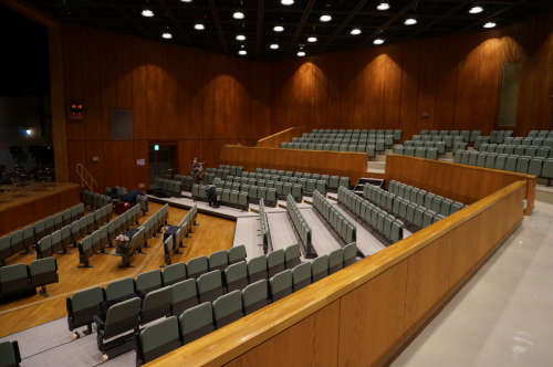 おとといはニューフィルの指揮者練習、1日だけのスケジュールで会場は多賀城市文化センターの小ホールです。ここの大ホールはだいぶ前に定期演奏会で使ったことがありましたし、その他にも震災後に多賀城市が主催する「第9」で依頼演奏を行っていましたね。その時には秋川雅史さんがゲストに呼ばれてました。いや、別に秋川さんが「第9」でテノール・ソロを担当したというのではなく、あくまで彼の持ち歌の「千の風〜」を別のステージで歌ったということなんですけどね。前の日のリハでは、一緒に歌う小学生たちに熱心に歌唱指導を行っていましたね。 小ホールの方は、入ったことはありました。宮城県の合唱祭が毎年ここで2つのホールを使って行われていて、私の合唱団は大ホールで歌ったのですが、他の合唱団を聴くために小ホールにも行きました。なかなかコンパクトで、いいホールだと思ったのですが、そこで練習すると聴いた時には、あのステージでは狭すぎるのでは、と思ってしまいましたね。 しかし、それは杞憂でした。ホールに入ってみたら、ステージで使う椅子を別の場所から持ってきてそれを客席からステージに上げているところでした。ステージは迫で前の方に広がっていて、後ろの反響板もありませんから、実際には、下の図「センターステージ」というところの奥まで使えて、この倍の広さがありました。 ![]() ![]() ![]() 最初にやったのが「くじゃく」だったのですが、そんな寒さのせいでしょうか、いつもなら楽々吹けるピッコロ・ソロの最初のコブシで指が絡まって音符が並びません。そこは即刻指揮者から「音がぼやけている」というご指摘です。なんとか暖かく感じられるようになったのは、後半のシューマンになってからでしょうか。 この日の佐々木さんは、地震で県民会館が使えなくなったという知らせを聞いて、マジで演奏会が再度中止になるのだと思ったのだそうです。そもそもこの演奏会は、1年前に行われていたはずのものですからね。それが、たまたま1週間前の指揮練のために土日に名取のホールが確保できていたので、まずはほとんど支障がなく開催できる見込みになったことをとても喜んでいたようです。名取のホールも最近使われていて、とても良いホールだと楽しみにされていました。練習も、軽い雑談を随所に挟みながら、とても楽しそうに進められていて、あっという間に終わってしまったような気がします。 このホールは、施設全体で感染対策には力を入れているようでした。入り口にはサーモメーターが常設されています。 ![]() ![]() ![]() |