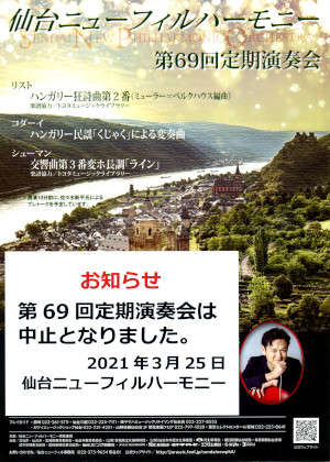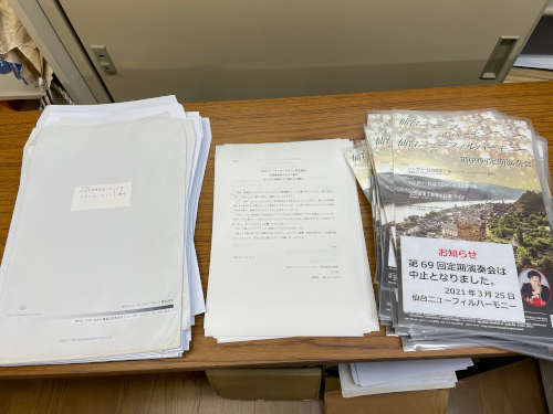 もうすでに公式サイトやSNSでご存知かと思いますが、ニューフィルでは今度の定期演奏会を中止することを決定しました。それは、昨日の臨時団員総会でのこと、その前に、先週の金曜日に私は生まれて初めてZoomなるものを体験していました。その前の、技術委員会の中での一斉メールの流れでは、どうも今度の定期演奏会を開くのは無理なのでは、という空気がありました。私などは、その前の指揮者練習もやる意味がないのでは、と言ってましたね。そのあたりのことを、急遽Zoomで直接話し合おうということで、いきなりその招待メールが届いたのですよ。私はまず、インストールから始めなければいけませんでした。 そして、そこに参加した時には、もはや話の流れは予定の4月11日の演奏会は無理なので、その先の代替日の検討という新しい段階に入っていましたね。5月になれば空いているホールがあるので、そこを予約するかどうか、という話でした。その段階で、なんか方向が間違っているのではないか、という気はしていたのですが、なにしろZoom初体験としてはその対応に精いっぱいで、自分の気持ちを整理して話すことなんかはとてもできませんでした。 それが混迷の始まり、結局その日は指揮者の都合が悪いので、別の指揮者を立てるのか、などというような話にまで広がった挙句、もう1日、4月29日に急にホールが空いて、その日だったら指揮者も大丈夫、などという選択肢まで現れてしまいましたよ。 それやこれやで、とりあえず練習日の予定だった昨日を、前半を臨時総会にあてて、後半に練習ということになりました。結局、その総会では、きちんと今の情勢を客観的の分析できるだけの材料が提供されたため、代替案の予定日までに通常の練習ができるようになるとは思えないということで、潔く今回の演奏会は中止することに決まりました。そして、4月いっぱいは練習も休むということにもなりました。私は、正直なところ、どこかの代替案は受け入れられて演奏会は実施、ただし、緊急事態宣言の間は練習は休む、という線で収まると思っていましたから、ここまでの展開にはちょっと驚いています。後半の練習はもちろんありません。それを期待していた人はがっかりしたでしょうね。 しかし、今日になって、仙台市長が市の施設の使用自粛要請を行うかもしれない、などというニュースがあったりすれば、やはりそこまでする必要は確かにあったのだ、と納得させられました。たぶん、ニューフィルは最善の選択を下したのだと思います。 そうと決まれば、その後の私の仕事は決まっています。これまで手分けして配りまくっていたチラシの対応です。でも、すでに私の中では腹案があって、中止でも延期でも対応できるようなプランはできていましたから、ここは「中止プラン」の敢行となります。 ![]() ![]() ![]() ![]() 明日は、「友の会」向けに、こちらは文書だけ(たった8通)を郵送するつもりです。それで私の仕事は終わり、あとは5月までゆっくり英気を養いましょう。いや、まだ一つ、あさってまでの別の仕事もあったっけ。 |