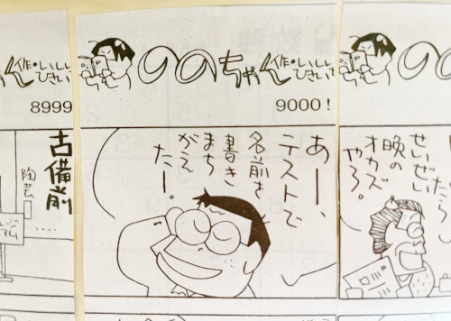 年末にはやっておこうと思っていたのが、毎日切り抜いている新聞の連載マンガの整理です。正確には「毎日」切り抜いているわけではなく、2ヶ月分ぐらいたまったところでまとめて切り抜いて、残りは縛って廃品回収に持って行くんですけどね。 ただ、そうやって切ったものを束ねた段階で達成感がMAXになってしまって、それをスクラップブックに貼り付けるという作業は後回しになっていました。それが積もり積もって、500枚以上になっていたのですよ。約1年半分ですね。ですから、もうこのあたりで貼り付け作業をやっておかないと、もう一生そのまま輪ゴムで束ねただけのものになってしまいかねません。 そんな折、愚妻がおずおずと「私、大変なことをしてしまったの」と言い出したのです。いったいなんだろう、不倫とか、などと一瞬考えましたが、続きを聞いてみると、その、まだ切り抜きが終わっていない新聞で、最近はクロスワードみたいなパズルが載っているので、それを毎日切り抜いて解いていたら、その裏側がマンガだったことに、たった今気が付いた、というのですよ。確かに、その気抜きを見せてもらうと、パズルの裏側が、4コママンガの3コマ目と4コマ目の間あたりで切れていましたね。 でも、別に、そうなっていても4コマ目は新聞に残っているので、貼り付ける時に一緒にすれば大丈夫ですから、そんな心配はないよ、というと、なんと、最初の頃のは、もう捨ててしまっているというのですね。普通は、そこでまず気が付きそうなものですが、もうそれはゴミとして出してしまっていたので、元通りにするのは不可能なのですね。 さすがに、これにはちょっとむかつきましたが、それがちょうど1ヶ月前ぐらいのものだったので、それだったら、同じ新聞を取っている職場では、おそらくまだ捨ててはいないだろうな、とは思いましたね。実際、次の日に職場に行ったら、その欠落した日のものは、すぐに見つかりました。 そんなこともあったので、その、コマの途中で切れているものもつなげて貼らなければいけませんから、たまっている分も合わせて一気に貼り付けることにしました。 ところが、その切り抜きはB5のスクラップブックにこのように1ページに5枚ずつ貼り付けているのですが、 ![]() それが、このマンガに関しては33冊目になっていました。ということは、280×33=9240ですから、途中で9000回のキリ番になっているはずですね。確かに、 ![]() というか、このマンガは、その前に同じ作者でキャラクターなどは全く同じものを別のタイトルで1935回連載していますから、それから数えると、とっくに10,000回を超えているんですね。あの「サザエさん」が6477回だそうですから、これはすごいことですね。 最近では、新聞そのものではなく、このマンガを切り抜くためだけに購読を続けている、という感が強くなっています。なにしろ、今では新聞本体よりも、広告の方がずっと多くなっていますから、ほとんど広告だけを見せられているな、という感じがしますからね。しかも、その広告が、 ![]() これを見た時には、本気で読むのをやめようかと思いましたよ。つまり、新聞社は、読者のニーズに応える前に、こんな醜悪な形で広告主のご機嫌を取っているのですよ。それは、国民のニーズよりは、党内の実力者の顔色を窺っている、今の政権与党と全く変わらないスタンスではありませんか。かつては気概もあったこの新聞社も、そこまで堕ちてしまったのですよ。 |