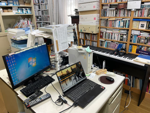 これが届きました。 ![]() ところで、私の職場では、もう建物を改築してから20年以上経過しているので、そろそろ設備関係のリニューアルが必要になってきました。特に、お客様が入る建物のエアコンは、ほとんど寿命なのだそうで、この際すべてのエアコンを新しくする、という工事が始まっています。 ![]() そうなると、私がいつもいる事務室でも、その工事が行われることになります。そのために、工事がしやすいように、少し模様替えをしたところです。 ![]() ![]() ![]() ここは、オーディオ・ルームでもあるのですが、今までは机の向こう側にスピーカーがある、という配置でした。でも、こうなると、直接スピーカーに向かい合って音が聴こえるようになりました。そうしたら、前と全然音が違ってきたのですよ。特に、楽器の定位がくっきりと決まるようになっていました。今までもスピーカーを見える位置ではあったので、そんなに影響はないだろうと思っていたのですが、やはり間に机があったりすると、かなり邪魔になっていたのですね。 そうすると、もうこっちの方が、空間も広がるしいいことだらけなので、ずっとこうしておいてもいいような気になってきました。もちろん、今までそうできなかった原因はあったのですが、それも、最近は棚からCDを出して聴く、ということはほとんどなくなりましたから、机で邪魔になるところにあった楽譜などを上に持ってきて、そこにCDを入れてみました。ついでに、机には後ろに鉄板が付いていたのですが、それも外してみたら、殆どのCDはそこから取れるようになりましたよ。 明日からは、朝早くから工事が始まるそうなので、仕事に必要なパソコンや、楽器類は別の場所に移動してあります。工事が終わったら、さらに快適な生活が待っているのだと思うと、ワクワクしますね。 |