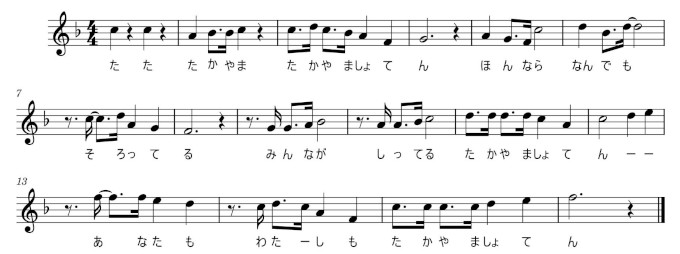 前回の「高山書店」で、一遍に半世紀前の思い出に浸ってしまいましたが、そういえばこの本屋さんのCMソングもあったなあ、と思いました。かつては、市の中心部のアーケード街では、BGMとして商店街のお店のCMソングを鳴らしていましたから、いやでも耳に入って来たのですよね。「♪白松がモナカ〜」なんてのは、最近まで聴こえていたような気がするのですけど。 そこで、やはり「♪たっ、たっ、たーかっやま〜」という、高山書店のCMも流れていたんですよね。以前、こちらに書いたように、仙台(宮城も)のCMソングを集めたCDが発売されていましたし、それの続編も出ていたので、どちらも入手してありました。ですから、その中にこの高山書店もあったはずだな、と見直してみたのですが、「金港堂」や「宝文堂」はありましたが、高山書店はありませんでした。あれだけ有名だったのに、音源が見つからなかったのでしょうね。 ですから、この際、記憶を頼りにその曲を楽譜に復元してみようと思ったのですよ。一通り作って、それを、私の弟に聴かせてみたら、「ちょっと違うな」というので、直してみたら、確かにそっちの方がしっくりしてきたとか、やはり一人だけの記憶では不完全なところもあるのだな、と実感しましたね。これが、その完成品です。 ![]() この楽譜を作るにあたって、どこかに音源がないかと探したのですが、唯一あったのが、こんな動画でした。楽譜のキーも、そこから頂きました。かなり高いのは、絶叫しているからでしょう。最後の「高山書店」だけ歌詞を付けて歌っているのが、シュールですね。というか、私もこの高校の出身者なのですが、もちろん当時はこんな応援歌はありませんでしたよ。 先日の「宝探し」で、その高校の徽章が入ったノートがあったことも、思い出しました。 ![]() ![]() |