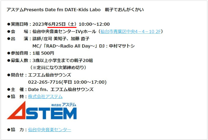 6月に入って、急に暑くなりましたね。街中を歩く人たちも、いつの間にか半袖の人が殆どという感じになっています。もうすっかり「夏」ですね。私の職場でも、エアコンがリニューアルされて最新の機種に変わっています。もう実際に使えるようになっていますが、前の機種にはなかったような細かい操作の設定も付いているので、音も静かでとても快適です。 今度の日曜日には、私は出られないのですが、ニューフィルがいつも練習に使っている場所でミニコンサートをやることになっています。その練習が昨日あったようですが、そこでは、本番の服装が、前に決まっていた「ダークスーツ」から、「上着なしのノーネクタイ」に変わったのだそうです。おそらく、会場はかなり暑くなるだろうという予測の元での変更なのでしょうが、あのホールはエアコンはギンギンききますから、逆に寒すぎるのではないか、という気がするのですが。 それは、男性のドレスコードですが、女性の場合は「それに準じる」ということなので、ノースリーブのドレス、なんて人もいるかもしれませんね。 お客さんも、事前に「50人限定」と言っていた通り、希望者が53人になったところで締め切ったそうなので、これだとほとんど演奏するメンバーの人数と変わりませんから、「人いきれ」で暑くなることもないでしょうし。 ま、私は録音と写真撮影はやってくるので、一応羽織るものぐらいは持って行くつもりです。 それが終わると、本格的に秋の定期演奏会へ向けての練習も再開されるのですが、そこで取り上げられるラフマニノフのピアノ協奏曲は、ソリストさんは直前にならないと参加できないので、その前の指揮者練習では代わりに弾いてくださる方がいます。その方は、本番のソリストが来る前の指揮者練習では、1日だけ来れないだけで、残りは全部ご一緒してくださるのだそうです。ありがたいですね。 その方は、学生さんのような人ではなく、すでにピアニストとして活躍されているれっきとしたソリストさんです。その方のお名前が、先日車に乗っていたらラジオから聴こえてきたので、びっくりしてしまいました。どうやら、そのラジオ局のイベントに参加されるようなのですね。そこで、詳しいことを知ろうと、その放送局のサイトから、その案内を探してみました。確かに、こんなのが見つかりました。 ![]() ちょっとこれでは困るので、電話でこのことを教えてあげましたよ。そうしたら、即座に直してくれましたね。 ![]() |