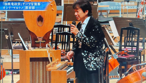 この間、BSで「大河ドラマ」のテーマ音楽の特集をやっていましたね。あの音楽は、代々NHK交響楽団が演奏していたのですが、そこで演奏していたのは広島交響楽団でした。そして、指揮をしていたのは、最近までこのオーケストラの音楽総監督だった下野竜也でした。まあ、下野さんはN響の正指揮者ですから、これほどの適役もないでしょう。というか、実際に、彼が指揮を担当したテーマ音楽もありましたからね。 その番組は、下野さん自身の軽やかなMCと相まって、なかなか良く出来ていましたね。その中で、仙台を舞台にした「独眼竜政宗」の音楽も取り上げられていましたが、それを作曲した池辺晋一郎さんと、曲の中でオンド・マルトノを演奏していた原田節さんまでゲストで出演されていたのがすごかったですね。その楽器まで運んできたのでしょう。 ![]() そして、今回の映像でも、こんなとんでもない衣装でした。このアングルではよく分からないのですが、正面から見ると蝶ネクタイを外しているように見えるのは、そんな宙ぶらりんの蝶ネクタイがシャツにプリントしてあったのですからね。 ![]() ![]() 仲野さんは、再来年の「大河」の主役ですから、とても器用な下野さんがそれに寄せたのかもしれませんけどね。 その仲野さんのことを知ったのは、まだ「太賀」だった頃の、こんなキャストでした。 ![]() 今シーズンの朝ドラでは、やはり笑顔が素敵な役を演じていましたね。大河ではどんな太賀を見せてくれるのか、今から楽しみです。 |