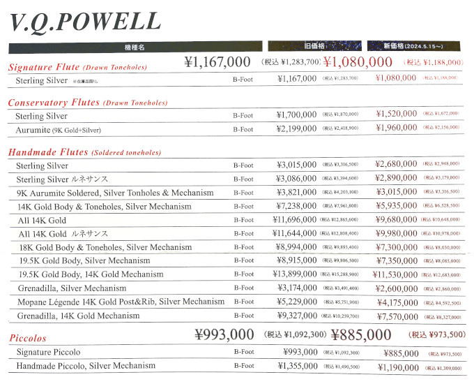 久しぶりに、Facebookのカバー写真を新しくしてみました。こんなんです。 ![]() これは、今私が使っている3つの楽器をそれぞれ分解してケースに入れた写真です。上からピッコロ、フルート、アルトフルートとなっております。 一番よく使っているのは、もちろん真ん中のフルート、パウエルのシグネチャーというリーズナブルな製品が出てすぐに購入しました。それが2004年だったことに、あちこち調べてやっとわかった時には、ちょっと驚きましたね。きっかり20年間使っていたことになりますよ。それまではムラマツのDNというのを使っていたのですが、それもやはりそのぐらい経っていて、オーバーホールを勧められ、その間のつなぎとして買ったのですが、もうすっかりこちらの方が気に入っていて、ムラマツはもう見向きもされなくなっています。それでいて、価格ははるかに安かったんですよね。楽器に関しては、値段は全くあてにならないことを知りました。 ピッコロを買ったのは、2017年でした。こちらは、やはりそれまで使っていたヤマハの安物を、さるフルートの先生の勧めで何とかという(もはや名前も忘れました)ところで改造してもらったら、もうボロボロになって帰ってきて、それでも騙し騙し使っていたのですが、さすがにもうダメだと思った頃に、同じパウエルの楽器を試奏してみたらとても吹きやすかったので、即お買い上げでした。 そして、一番下のアルトフルートは、2019年に買いました。その頃、もしかしたらニューフィルで「春の祭典」をやるかもしれないという噂が立っていたので、もちろん本気にはしていませんでしたが、とにかく自分の楽器としてアルトを持っていたかったので、総銀の楽器が格安で売られていたパールの楽器を買いました。その直後にアンサンブル大会でデビューしたのですが、それ以降はコロナのせいで出番は全くありません。もちろん、「春の祭典」など、やれるわけがありませんでしたね。 それぞれの楽器は、購入時の価格だと大きさに反比例してピッコロが一番高くて、60万円ちょっとでした。そしてフルートが50万円台、アルトはなんと30万円台でした。 ![]() ここで、私が以前購入したグレードの楽器の価格だけ大きくしておきました。フルートなんかはほぼ倍になってますね。 ところで、このリストにはとんでもない間違いがあります。私の楽器もそうですが、最近のフルートは最低音が「H」、英語だと「B」の音までが出るものが標準になっています。そこで、ここにあるように足部管の規格を「B-Foot」と表示しているのですが、ピッコロではそんな低い音は出ないのですよね。そんな楽器があれば、ぜひとも買ってみたいものですが、このメーカーのサイトを見たら、その値段の楽器は「D」までしか出せない、普通の楽器でした。 パールのサイトを見てみたら、やはり、同じアルトが50万円台に上がっていましたね。 |