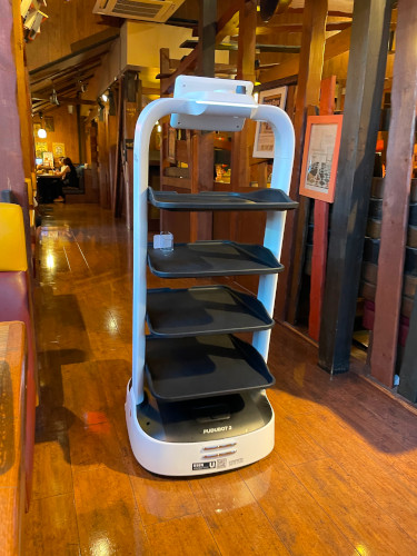 いつもはニューフィルの練習の前には「とらの子」で晩ご飯、というのがルーティンなのですが、最近、「びっくり!ドンキー」で、期間限定のメニューでメンチカツをやっていると聞いて、久しぶりに行ってみました。どちらも、旭ヶ丘の練習場まではすぐのところにありますからね。 ![]() その時に行ったのは黒松のお店でしたが、そこでは、もちろん注文はタブレットです。ですから、いずれは、もってくるのがロボットになるかもしれないな、などと思っていたのですが、それが出てきたのですよ。 ![]() このお店は、結構段差がありますから、厨房と同じ高さのこのあたりには来れるのでしょうが、高くなっているところにも行っているのでしょうかね。 このロボット、別のファミレスではこんなデザインでしたね。 ![]() まあ、少なくとも「とらのこ」でロボットが働いている姿は全く想像できません。というか、ここでは、フロア担当の女子アルバイトがちょっと多すぎるような気がします。それで、暇な時には、厨房で大声で雑談しているのが聴こえてくるので、ちょっとがっかりしてしまうのですよね。 でも、最近になって、男子のバイトが入ってきました。その人、最初のうちはレジの打ち方など分からなくて「先輩」に教わったりしていたのですが、段々慣れてきて、一人前のウェイターになっていましたね。でも、今度は、あまりにまじめすぎて、マニュアル通りにしゃべっているのが鼻についてきたりして。 そんなお店ですが、料理はおいしいですね。そしたら、本屋さんでこんな本を見かけたのですが、 ![]() |