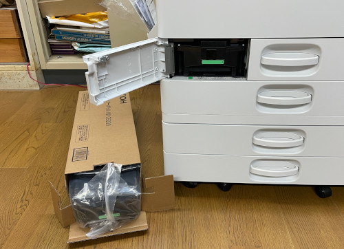 昨日は、「かいほうげん」の発行日を予定していました。ちょっと練習のスケジュールが会場の都合でその次は分奏になっていたので、昨日出さないとちょっと間抜けなことになってしまうので、その日はだいぶ前から決めていました。ただ、いつもはきちんと原稿を送ってくれていた方が、今回はなんだか手間取っているよう、もうデッドラインを超えているので、もうその分はあきらめて12ページでだそうなかな、と思っていたら、土曜日になってやっと送ってくれました。なんか、かなりお忙しかったようですね。それでも、結局、間に合わせてくれて、感謝です。 あとは、もうルーティンの作業だけですから、昨日の午前中には印刷が終わっていました。 この間から、紙をまとめて折ることができる機械を導入していて、その時には印刷を始めて製本が終わるまでは1時間半ぐらいかかっていました。それが、今回はちょうど1時間で終わってしまいました。前回は20ページだったのが、今回は本来の16ページに戻ったからなんですけどね。ということで、16ページでもやはり1時間半かかっていた以前のコピー機よりも、ずっと早く仕事が終わるようになっていましたね。なんか、あまりに速いので、逆に戸惑ってしまいます。 その印刷の途中に、トナーが1本なくなったので、それを交換したら、自動的に次の日には新しいトナーが配達されていました。しかし、今回は、それと一緒に「廃トナーボトル」というのも持ってきてくれました。 ![]() とはいえ、その作業は、いくら気を付けても、トナーが飛び散ってしまうので、あとで掃除をしなければいけませんでしたね。ところが、今度の機械では、その廃トナーボトルごと新しいものに交換して、一杯になったのは持ち帰ってくれるようになっていたのですよ。 ![]() そういえば、設置した時に、もうお馴染みになっていたサービスさんが、そんなことを言ってましたね。ネットで調べたら、その作業は基本的に「お客様ご自身で」やっていただくものなんだそうです。ですから、もう、これに替えて2年近くになりますから、そろそろ溜まって来ただろうということで、これを送ってきたのでしょうね。というか、そのサービスさんは、以前は月に1回は点検にやってきたものですが、今回はまだ1度も来ていません。もう、簡単なものは「お客様自身で」、というのがスタンダードになっているのでしょうね。確かに、この2年近くの間、サービスを呼ばなければいけないようなケースは全くありませんでしたからね。 |
