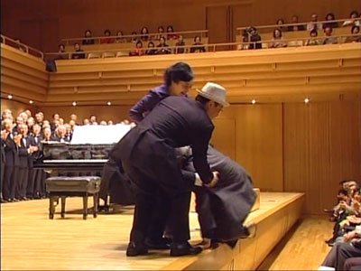 ステージの方は、そういう演出なのでしょうか、エジプトらしい風情はあることはありますが、一体いつの時代なのかよく分からないような衣装にはとまどってしまいます。それよりも、男の格好で女の声を出したりしていますから、この役は男なのか女なのか分からないのは大問題。明らかに男のひげ面なのに、声は女、しかもスカートをはいていたりしますからね。次の場では男の格好をしてますから、多分男、だと思うと、今度はブラを付けたり、とか。