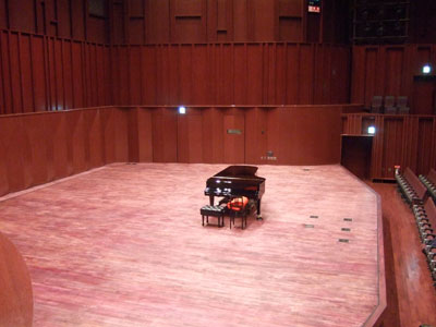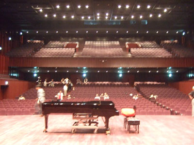 次の日は、この間の「萩ホール」でしたね。あの時2階席で聴いた音は、ちょっと忘れられないようなものでした。本当に楽しみ、ぜひニューフィルでも使ってみたいですね。ただ、あの内装は・・・。私は、巨大な「味噌樽」の中にいるような気になりました。