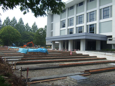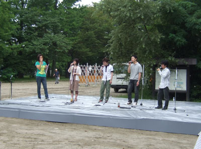 実はこの日は市民会館で合唱の練習、この間来た時には入り口が閉まっていたのですが、工事のない週末は開いていて、会議室などは使えるようになったいたのですね。ちょっと早く来すぎたので、ちょうど西公園でやっていたア・カペラのグループを聴いてみます。