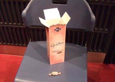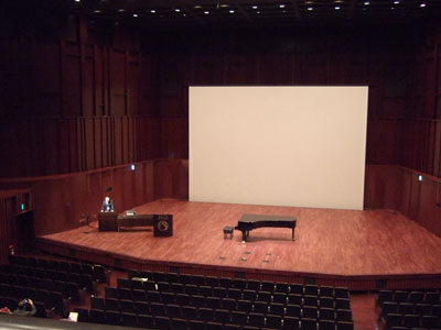 しかし、他のお客さんはやはりそんなには来ていませんでした。私は、2階席の一番前に座って、もっぱら音を聴くことに専念。見ると、2階席の真ん中あたりが招待席で、西澤元総長の名札なども貼ってありましたから、音響的にはこのあたりが自信のポイントなのかもしれませんね。