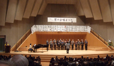 合唱もなかなかのものでした。色々な合唱団が集まった団体なのですが、蝶ネクタイのタキシードやダークスーツに混じって、詰め襟の学生服の男声もいました。おそらく高校生なのでしょうか。確かに、一般の合唱団で高校生も参加しているところはありますからね。