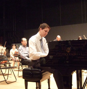 最初にモーツァルトのフルート協奏曲が、ソリストの山元さんを初めてお迎えして演奏されました。カデンツァのコピーが指揮者の譜面台に載っていたので見せてもらったら、レイモン・ギオーの手書きのカデンツァでしたよ。山元さんはそれは全部は吹かないで、あとは本番でのお楽しみ、といった感じでしたが、なかなか面白そうなカデンツァでしたね。