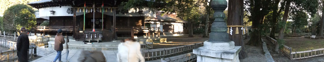 このように、自分のまわり、360°の連続したパノラマを簡単に撮ることが出来るのですね。つまり、何枚も連続して撮ったスティル写真を、カメラの中で合成して、こんなものが出来上がるのでしょう。ですから、じっとしている建物なんかはきちんとつながっていますが、人間が途中で動いたりすると、「合成」されてとんでもないものが出来上がってしまいます。これは、けさ行って来た青葉神社。一緒に行った家族も写っていたのですが、そんなわけでとても人前には出せないようなものになってしまったので、消してあります。