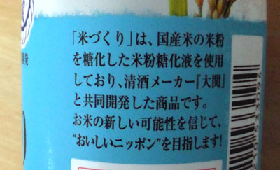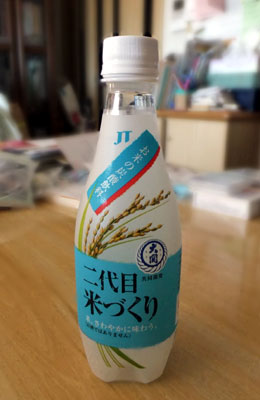 こんな風に、「二代目米づくり」がくっきり目立つように仕上がります。って、いったいこれはなんなんでしょう。最近こんな「飲んでみて」とわざわざ持ってきてくれる人が増えてます。見た目、日本酒みたいですね。スパークリング清酒、でしょうか。でも私が飲めないことは知っているはず。こわごわ飲んでみたら、ほとんどカスピス・ソーダでした。これは仙台でも手に入るのでしょうか?