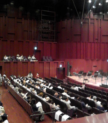 でも、向かい側、下手ではちゃんとお客さんが入ってますね。つまり、入れなかったのは上手のバルコニーだけ、なぜそんなことになったのかと言えば、このホールの最大の欠点、バックスペースが恐ろしく狭いために、オケに合唱が加わる時には、お客さんも通るロビーで合唱が待機していなければいけないので、それを避けるためにこのバルコニーの入口からお客さんを締め出す必要があるのですね。