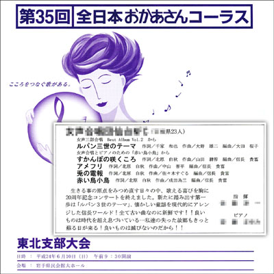 私はもう関係なくなってしまったのですが、きのうは「宮城県合唱祭」というものが、多賀城の文化会館で行われました。その名の通りの、県内のほぼすべての合唱団が集まる年に一度のお祭り、去年は震災の影響でもっと後の時期に別の会場で行われていましたが、2年ぶりにいつものところでの開催です。私は行くことはなくても、愚妻は朝一番に間に合うように会場に着かなければなりませんから、私が車で送って行くしかありません。本当は、終わってからも迎えに行かなければならないのでしょうが、あいにく今度は午後には私の方に用事がありました。それは、さる合唱団のコンサート、なぜ「お祭り」と同じ日にコンサートなんか出来るのか、と思うかもしれませんが、そこは宮城県の団体でありながら宮城県の合唱連盟には入っていないので、そんなことが可能なのですね。でも、他の仲間に聴いてもらえないなんて、なんかさびしいですね。つまり、それが午後いっぱいかかってしまうので、終わってから多賀城に行ってももう間にあわないのですね。