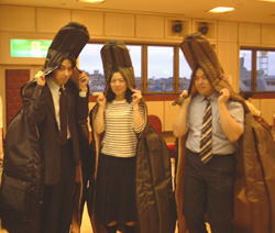 団の予算で買ったCbのケースのお披露目ということで、3人してポーズをとってくれました。こんなおちゃめなことを何の恥じらいもなくやってくれるメンバーは、私の誇りです。この写真は、来月の「かいほうげん」紙上を華々しく彩ることでしょう。