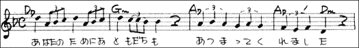 さだまさし本人のによる記譜は次のとおりです。もちろん、リズム構造自体には何の違いもありません。