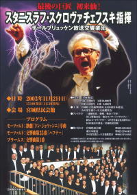ステージ上には、珍しいことに、録音用のマイクロフォンが設置されていた。メインの釣りマイクだけではなく、ティンパニや管楽器、第1ヴァイオリンとチェロのあたりには、補助のマイクスタンドなどもあり、かなり本格的な設置方法であることが分かる。もしかしたら、CDのための生録音でもするのかしらん。しかし、このマイクスタンドが、思いもかけない障害物であることが判明した。オーケストラの団員が入場し終わり、チューニングも完了して、指揮者の登場となったところ、当の指揮者は舞台の一番前を歩いてきたものだから、そのマイクスタンドが進路を遮る形になって、その場所で何とも年寄り臭い危なげな足取りになってしまったのである。袖から出てきた瞬間は、とても80歳とは思えないような堂々たる歩調だっただけに、この、ほんのちょっとした配慮の不足が、せっかくの指揮者のポーズを打ち砕いてしまったことは、本当に残念でならない。もっとも、スクロヴァチェフスキ自身は、そのあたりを気遣ったコンサートマスターにさもなんでもなかったかのような笑顔を振りまいていたのだから、実際はそんな深刻なものではなかったかも知れないが、そのような他人の好意に甘えることは、本来あってはならないことなのだ。