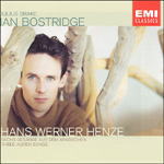 今回の1枚は注目のテノール、イアン・ボストリッジが歌うヘンツェの歌曲集です。この「6つのアラビア風の歌」はボストリッジのために書かれた曲で初演も1999年という出来たばかりのものです。ここら辺の音楽というのは、実際に聴いてみないと良し悪しがわからないものが多いのですが、作曲家が特定の演奏家を想定して書いた曲というのは、割合当たり外れがないように思います。なぜならば、実験的要素を盛り込みすぎて難解に仕上がった物よりも、演奏されることを念頭に置いて書かれた作品の方が、より聞き手の心に近いような気がするからです。20世紀の音楽を語れるほど聞き込んでいるわけではないので、あまり偉そうなことは申せませんが。