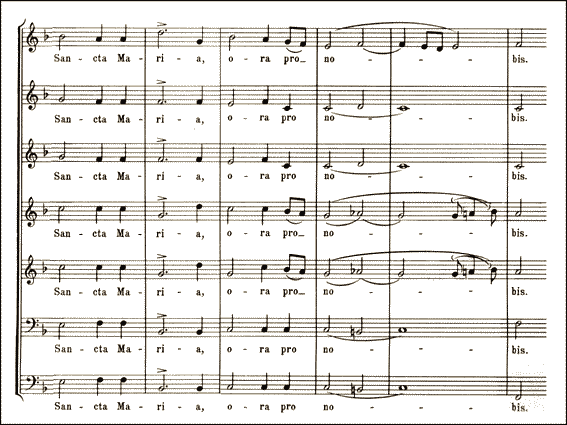 ところで、ブルックナーの「アヴェ・マリア」の最後、「Sancta Maria, ora pro nobis」の、最後の単語の「no」の部分の2つ目の音に付けられた和音が、楽譜では減7なのに、ここではアルトを半音下げて属7になっています(譜面とMIDI参照)。こんな風に変わったところがあると、なんか気になるものです。