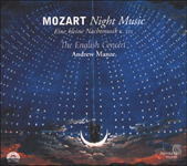 有名なシンケルの重々しい「魔笛」のセット・デザインのジャケ、タイトルが「夜の音楽」、そして、演奏しているのが、「悪魔のトリル」で一躍有名になったアンドリュー・マンゼですから、このアルバムを聴こうとするときには嫌でもある種の先入観を持たずにはいられないことでしょう。つまり、何かおどろおどろしい、闇の中から生まれたような音楽とか。