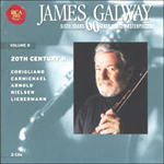 ところで、人気、実力ともに抜きんでているゴールウェイのことですから、録音したものはいつでも(オールウェイズ)全てリリースされていると思いがちですが、中には録音されたきりお蔵入りになって、ついぞ日の目を見ないものもあるのです。このシリーズの第8巻に収録されているジョン・カーマイケルというオーストラリアの作曲家が作った「フェニックス」という、フルート協奏曲も、そんなもののひとつです。1980年にシドニーで初演され、そのメンバーによってすぐ録音されたものですが、なぜかリリースの機会がないまま、このボックス・セットに収録されるまで20年近く誰にも聴かれることがありませんでした。1980年といえば、ゴールウェイがソリストとして独り立ちした直後です。まるで映画音楽のようなスペクタクルなこの曲に、これから世界を制覇しようというゴールウェイの意気込みが加わって、胸のすくような快演が展開されています。