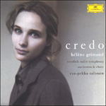 「クレド」というこのアルバムのタイトル、ともに、今ではクラシックに見切りを付けたレーベル、TELDEC(WARNER)やSONYをリストラされたグリモーやサロネンが、とらば〜ゆ先のDGでの初仕事を「ぜひ聴いてくれど」という思いで付けたわけでは、もちろんありません(そもそも「credo」ってラテン語ですし)。これは、グリモーの綿密なコンセプトに基づくアルバム、収録されているのは、ジョン・コリリアーノの「オスティナートによる幻想曲」とベートーヴェンの「テンペスト」ソナタというピアノソロ、そして、オーケストラと合唱を伴った、同じくベートーヴェンの「合唱幻想曲」と、アルバムタイトルともなっている、アルヴォ・ペルトの「クレド」の4曲です。グリモー自身のライナーや、併載されているインタビューによって、その「コンセプト」は知ることが出来ますが、あえてそのような意図を先入観として持つよりは、素直に最初から聴いていったほうが良いのかも知れません。グリモーの語る「精神的な関連性」は、言葉で理解するよりも、音楽そのもので感じた方が、より実のある体験となるはずです。