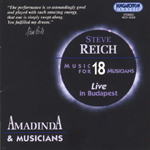 この曲の録音、今までに「ライヒと仲間たち」によるものと「アンサンブル・モデルン」によるものがありましたが、今回まったくノーマークのハンガリーのレーベルからライブ盤がリリースされました(録音は1990年で、最新のものではありません)。「Amadinda」という、ハンガリーの4人組の打楽器アンサンブルが中心になって演奏されているこのアルバム、この曲の「温かい」キャラクターが存分に生かされた仕上がりとなっています。ライブ録音ということもあるのでしょうが、確かに、ライヒの作品には不可欠とされる、機械のように正確なパルスの打ち込みは、時として破綻をきたしていることもあります。しかし、逆にそこから生まれる「人間っぽさ」は、とことん精度を追求したライヒたちのスタジオ録音には見られないものです。ヴィブラフォンのきっかけで楽器の組み合わせが瞬時に変わる箇所がいくつか用意されていますが、そこでの場面転換の鮮やさには、思わず引き込まれるものがあります。単純なパターンが成長していく過程で、何かドラマティックなものを感じてしまうのも、新鮮な驚きです。本来デジタルな指向のこの作品に、あえてアナログっぽいアプローチを試みた(実際、これはアナログ録音!)、そんな肌合いでしょうか。