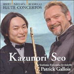 今回のアルバム、そのガロワが、自身が今までレパートリーにしてきたフルート協奏曲のバックを務めているという点で、興味は尽きません。そして、期待通り、ここでは単なるソロのバックに終わっていない、雄弁きわまりないオーケストラを聴くことが出来ます。例えばイベールの第2楽章、瀬尾さんのフルートにからみつくように熱く歌い上げるオーケストラは、まさに熟れて木から落ちる一歩手前の果実のような、芳醇な味を聴かせてくれています。フルートを吹く人以外にはあまり馴染みのないニールセンの協奏曲でも、今までにあった録音ではあまり感じることの出来なかった曲としての充実度を、このコンビは醸し出していました。このアルバムが録音されたのはフィンランド、そしてもちろんオーケストラもフィンランドのもの。同じ北欧圏のデンマークの作曲家ニールセンとは、深いところでつながっているものがあったのでしょうか。そして、充実度という点では、ロドリーゴの超難曲「パストラル協奏曲」を、これほど完璧に吹ききったソリストは、初演者ゴールウェイの他には知りません。いや、もしかしたら、この瀬尾さんの演奏はそのゴールウェイのものさえ凌駕しているかもしれませんよ。冒頭の、果てしなく続く高音の音列の見事さを聴くにつけ、その感は深まります。そして、第2楽章の、まさに瀬尾さんでなければなしえないような、独特の「歌」。なんでも、この曲を取り上げるのは今回が初めてだとか。なまじレパートリーとしての「丸み」がついていない分、鮮烈な表現はストレートに伝わってきます。