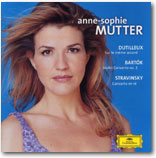 ここでムターが世界初録音を行ったのは、今年89歳になるフランスの重鎮アンリ・デュティユーが、ムターのために作った「同じ和音の上に」という曲です。副題として「ヴァイオリンと管弦楽のためのノクターン」とあるように、これは「協奏曲」のような大規模な作品ではありません。演奏時間が9分という、ほんの小品な訳ですから、シングル盤を出せるポップスならいざ知らず、クラシック業界ではこれだけで1枚のアルバムなど作れるはずもありません。そこで考えたのが、過去にリリースされた曲とのカップリングです。91年に小澤と入れたバルトークの2番、そして88年にパウル・ザッハーのサポートで録音されたストラヴィンスキーの、それぞれの協奏曲が、ここでは選ばれました。もちろん、そのような「使い回し」を正当化させるために、ライナーノーツでもっともらしい理屈をこねくり回すのには、抜かりはありません。ポール・グリフィスという高名な音楽評論家は、「曲が出来るにあたっての作曲家とヴァイオリニストの間の対話」というテーマで、バルトークにおけるセーケイ、そしてストラヴィンスキーにおけるドゥシュキンの役割をこのデュティユーの新作におけるムターのそれとを並列で論じるという手法で、2500円以上のお金がたかが9分の曲のために費やされなければならない理由を、だれでも納得出来るように説明してくれているのです。